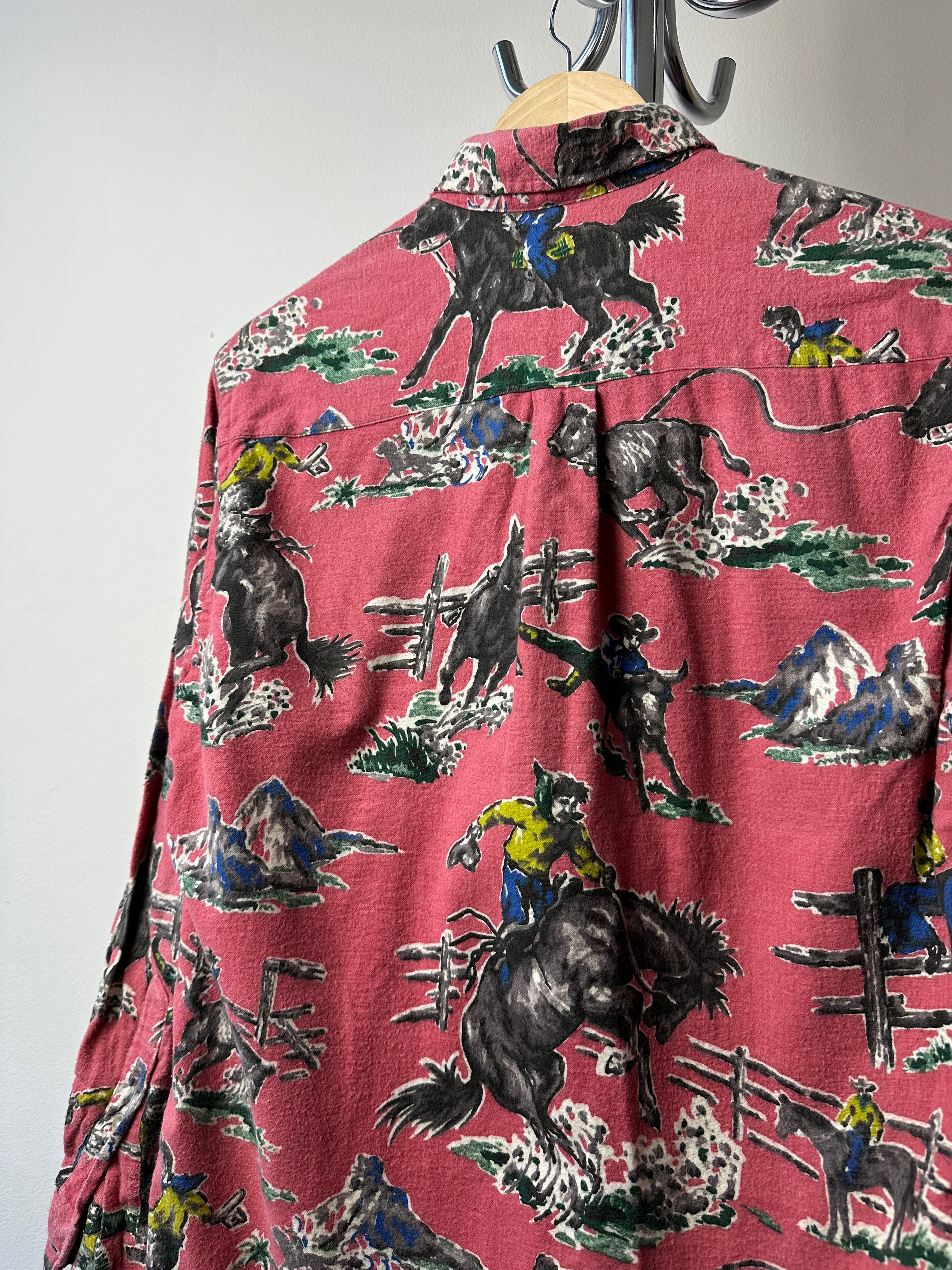Vintage 1990s Shadow Boxer Western Cowboy Print Shirt "Made in USA" - size S