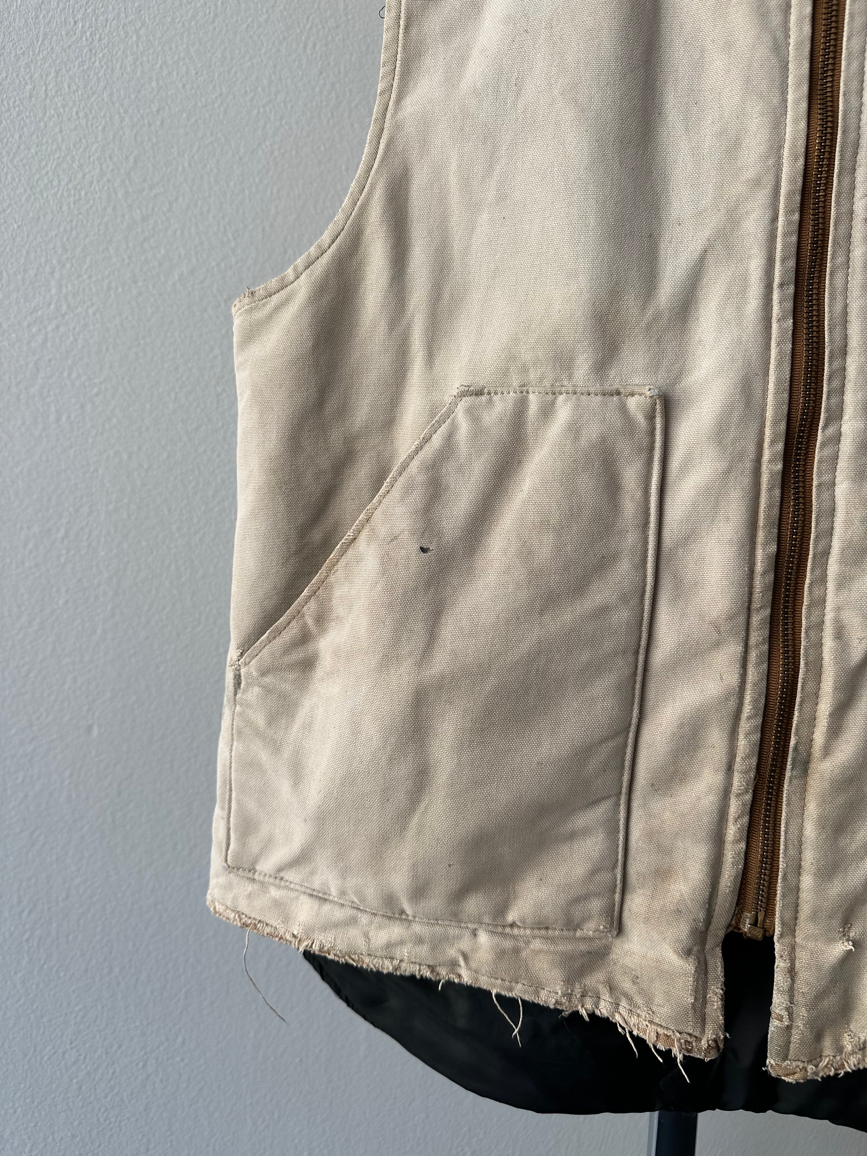 Heavily sun faded Carhartt vest, some distressing on bottom & a few paint stains, i would say perfect vintage condition if you are looking for a workwear piece that has a soul