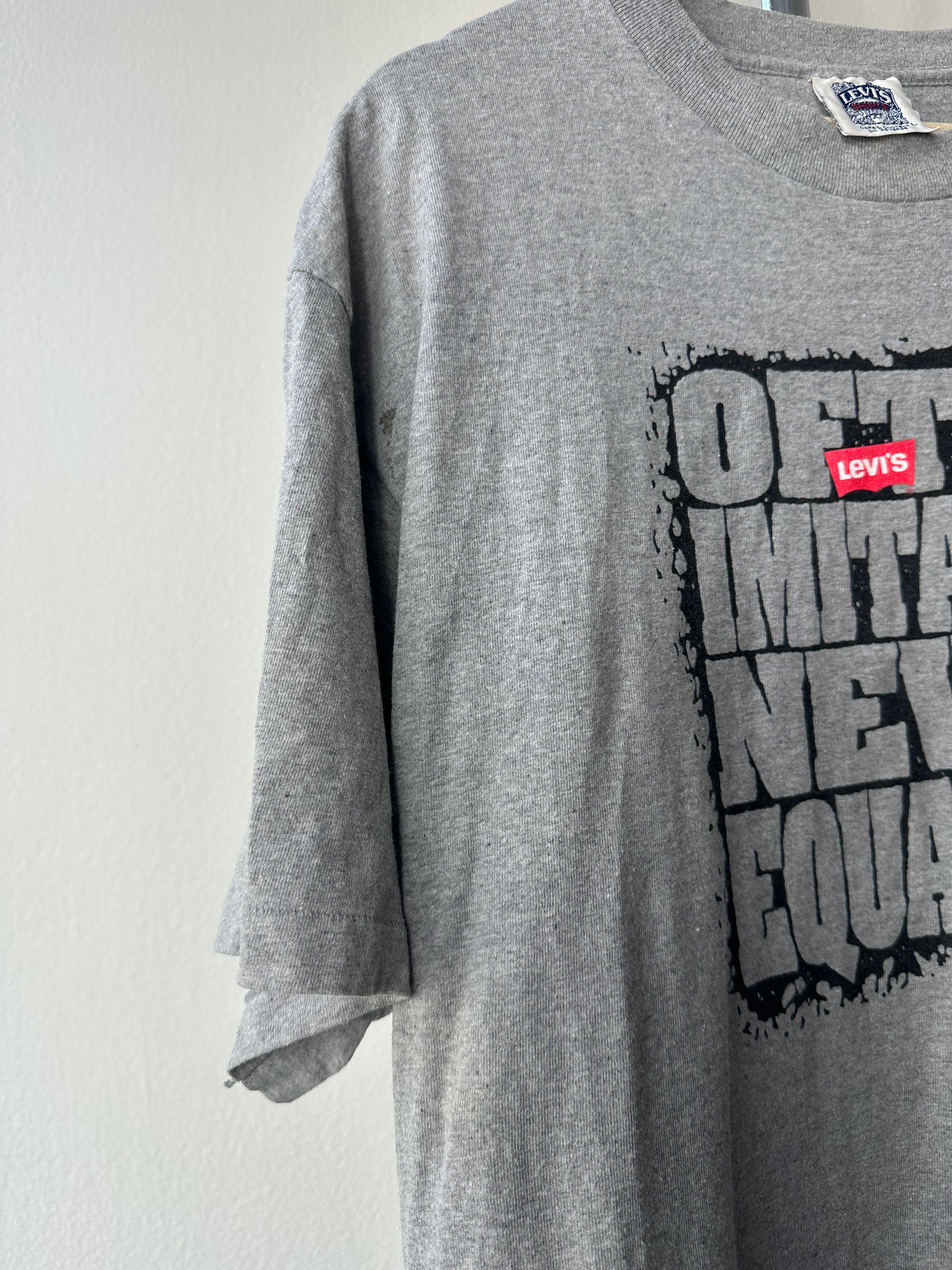 A classic 1990s Levi's graphic tee, carrying a bold "Often Imitated, Never Equalled" slogan front and center.