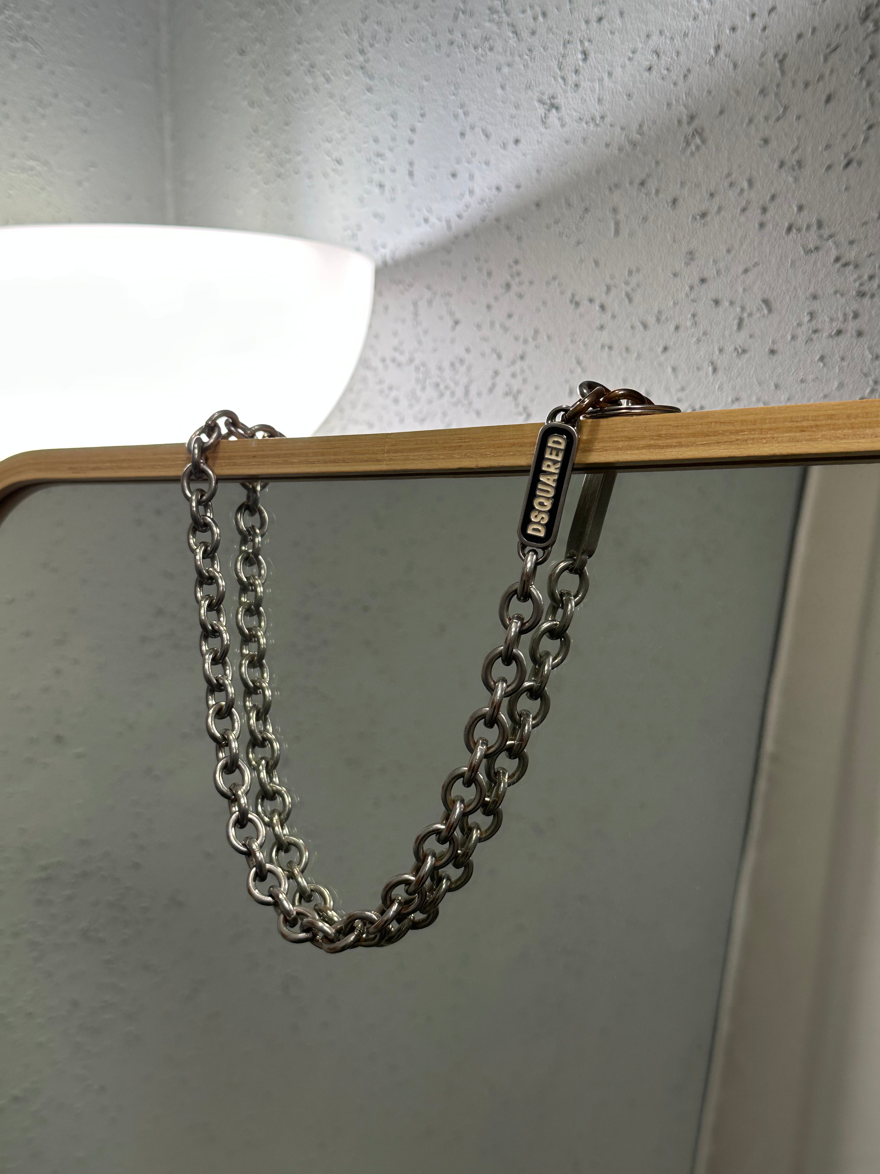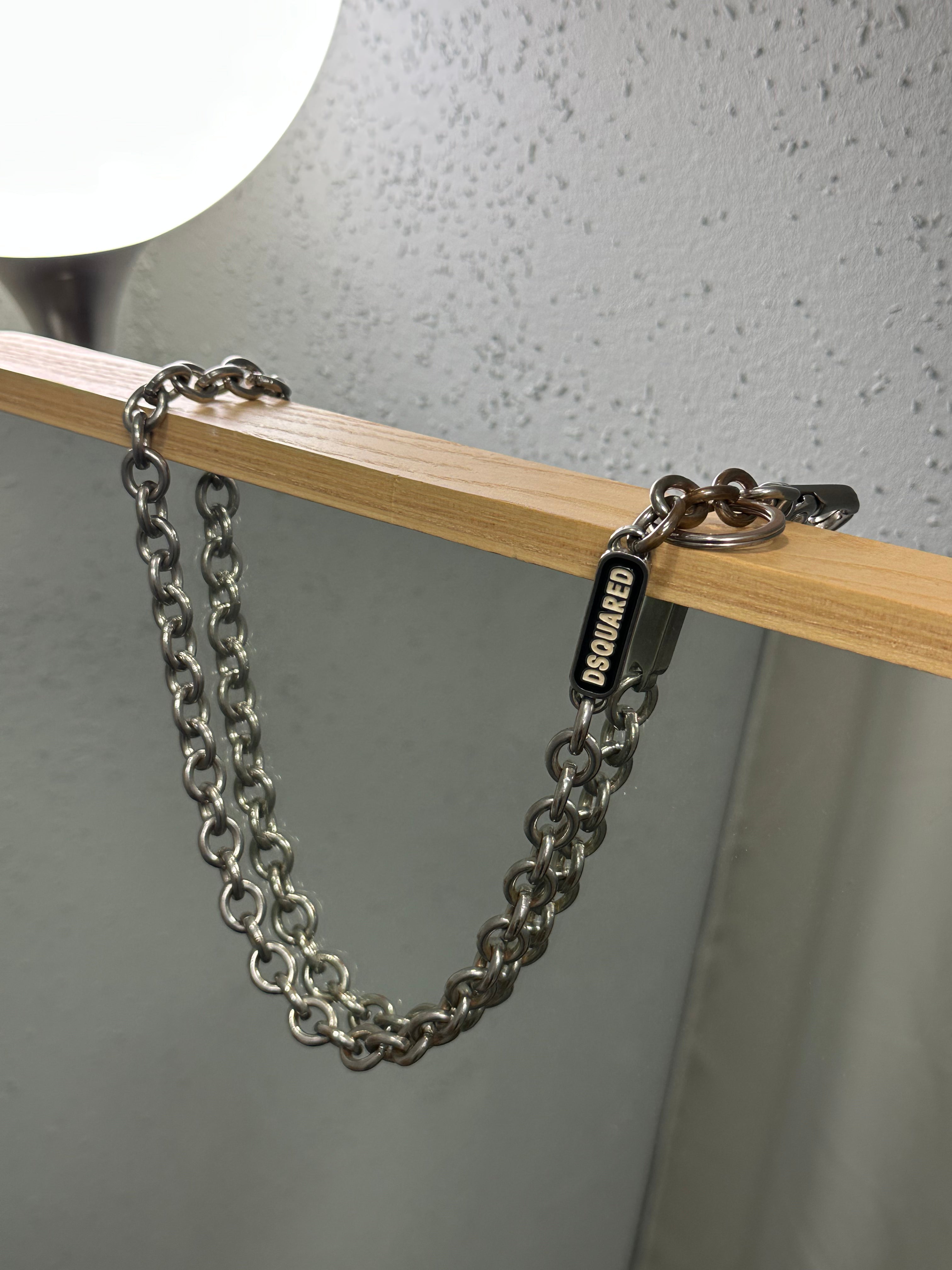 A proper statement accessory from DSQUARED². Heavy, well-made chain with a solid feel and clean hardware. Designed to sit naturally from belt loop to pocket — not decorative fluff, but functional weight and attitude.