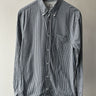 A classic Acne Studios piece executed with their signature precision — this striped button-down blends a minimalist silhouette with subtle tailoring details. Cut in crisp poplin cotton with a fine navy and white vertical stripe, it features a button-down collar, front chest pocket, and rounded hem. The fabric has a soft structure, balancing smart and casual effortlessly.