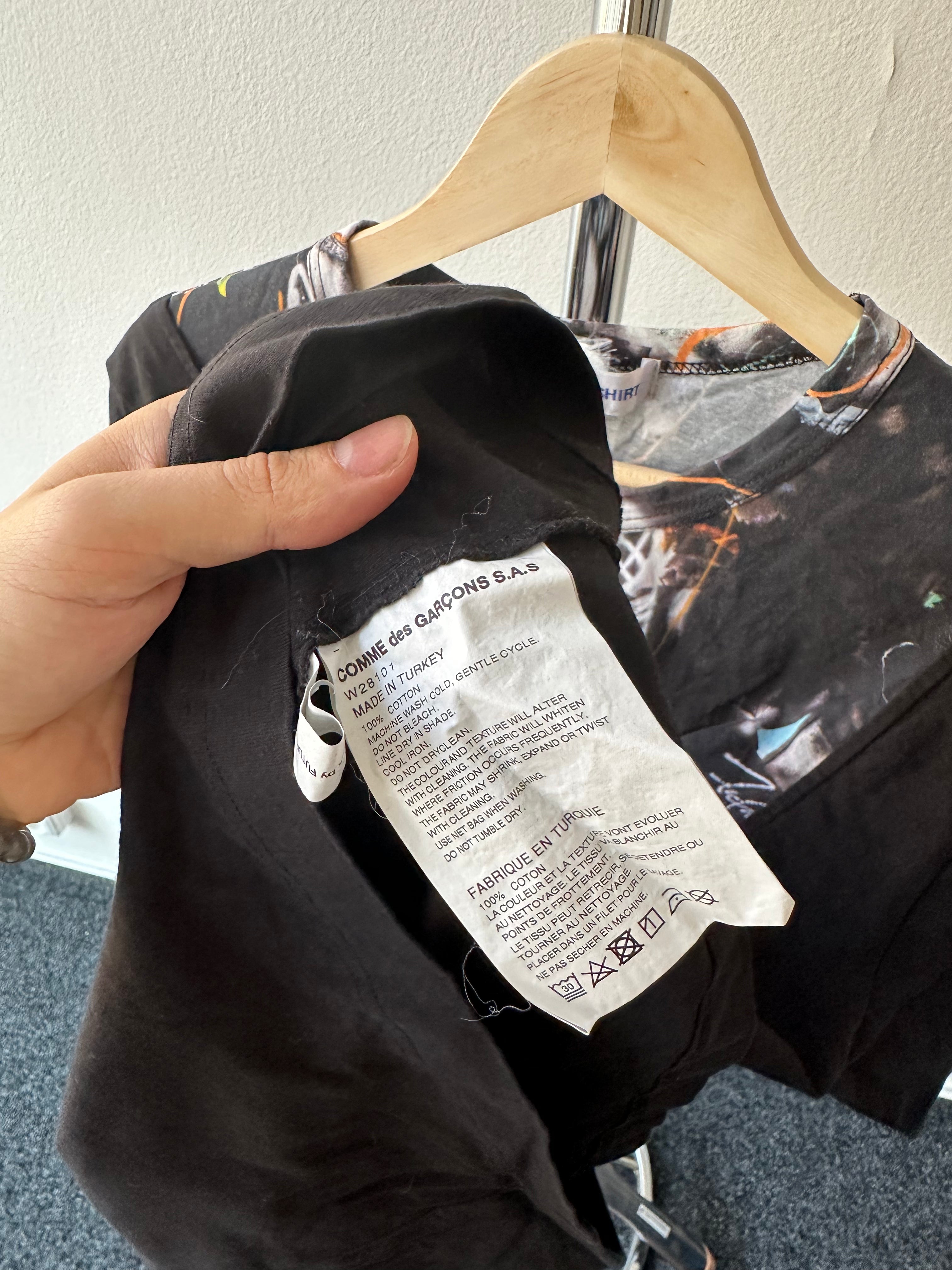 Amazing piece from CDG Shirt, has a nice slim fitting material with interesting layered graphic