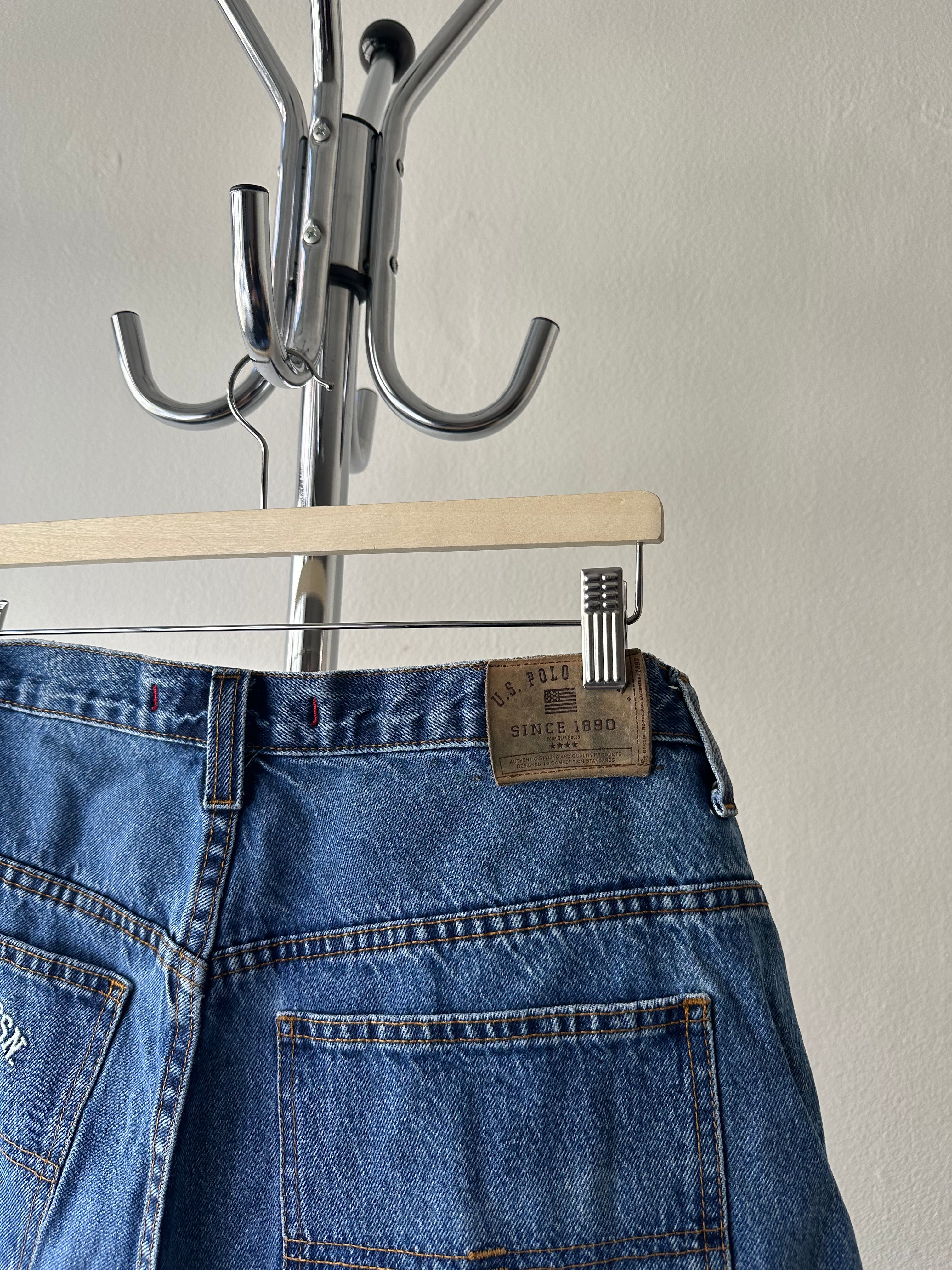 Heavyweight vintage carpenter shorts from U.S. Polo Assn. in a rich mid-wash blue. Classic carpenter silhouette with utility side pockets, red label details, and bold embroidery at the back. These sit at the waist and drop into a wide, relaxed leg—offering that perfectly baggy 90s fit that’s hard to replicate.