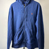 Vintage Polo Ralph Lauren zip-up hoodie in a perfectly faded blue tone with subtle wear that gives it lived-in character.