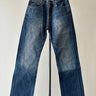 These Levi’s 503 jeans bring a unique blend of vintage durability and a slightly more relaxed fit compared to the classic 501s. Featuring deep indigo fades, whiskering, and a well-worn texture, they showcase the timeless appeal of late 1990s to early 2000s Levi’s denim. Perfect for those who appreciate a structured yet comfortable vintage silhouette.