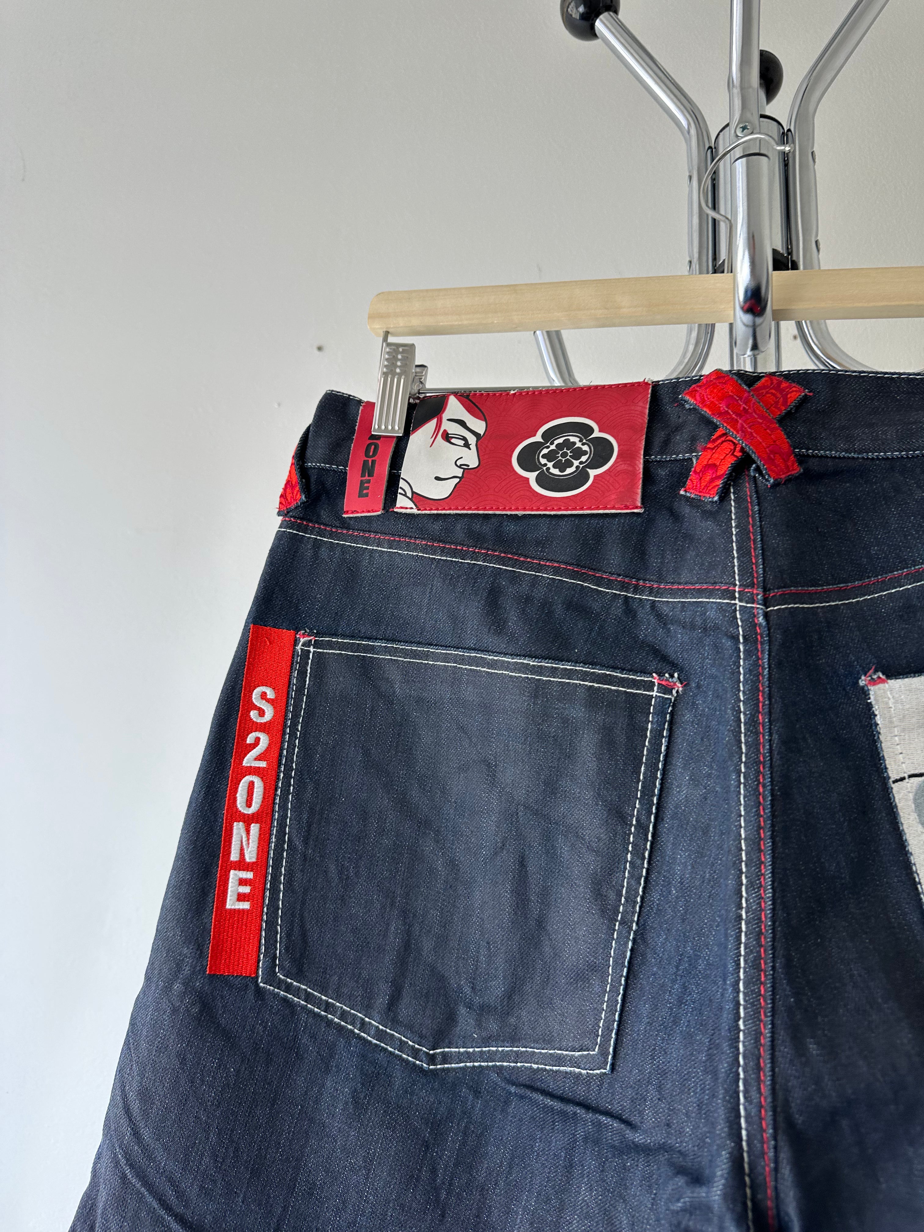 Vintage S2ONE’d Denim “Kabuki” Embroidered Jeans - size 34 x 32