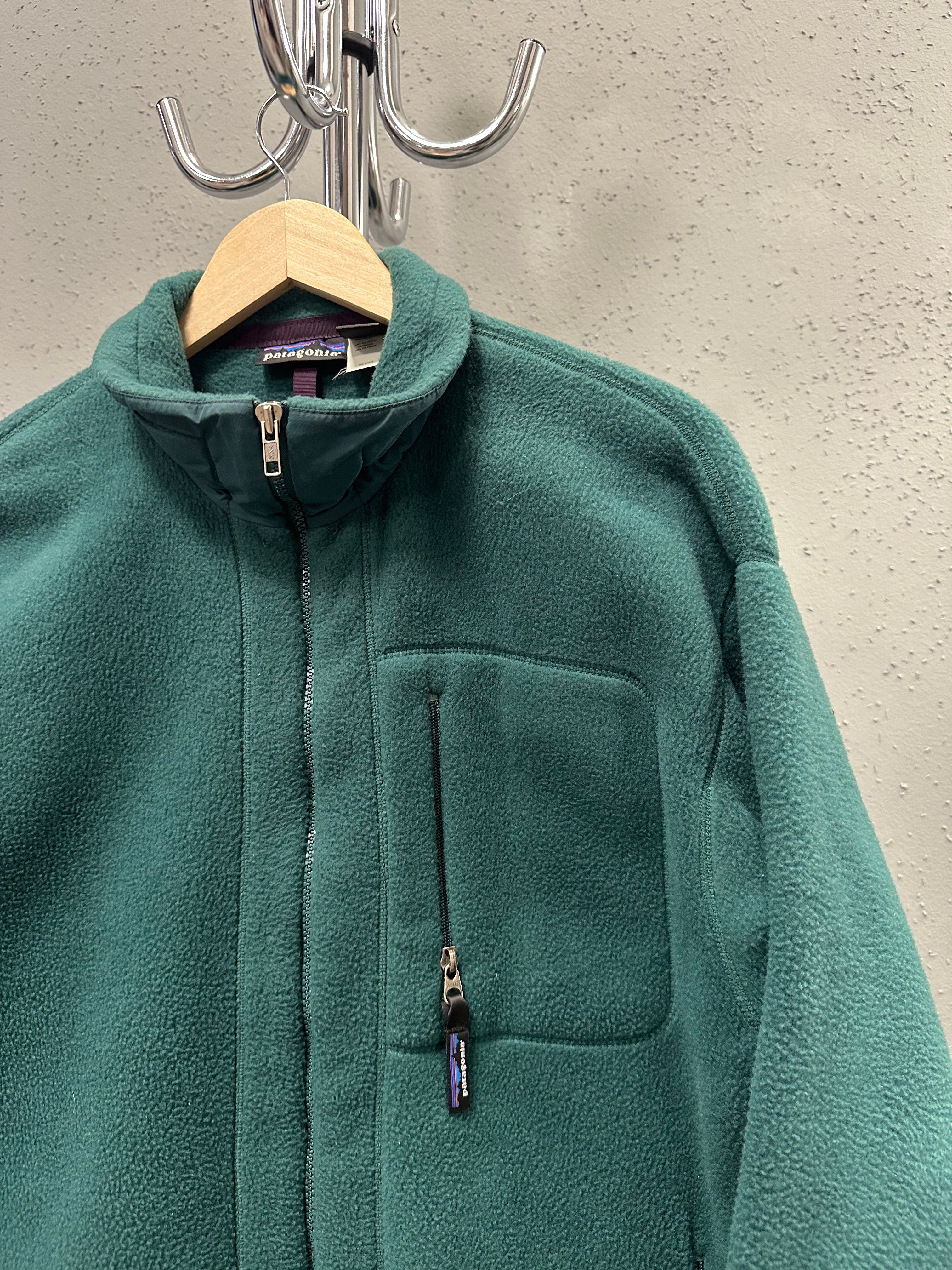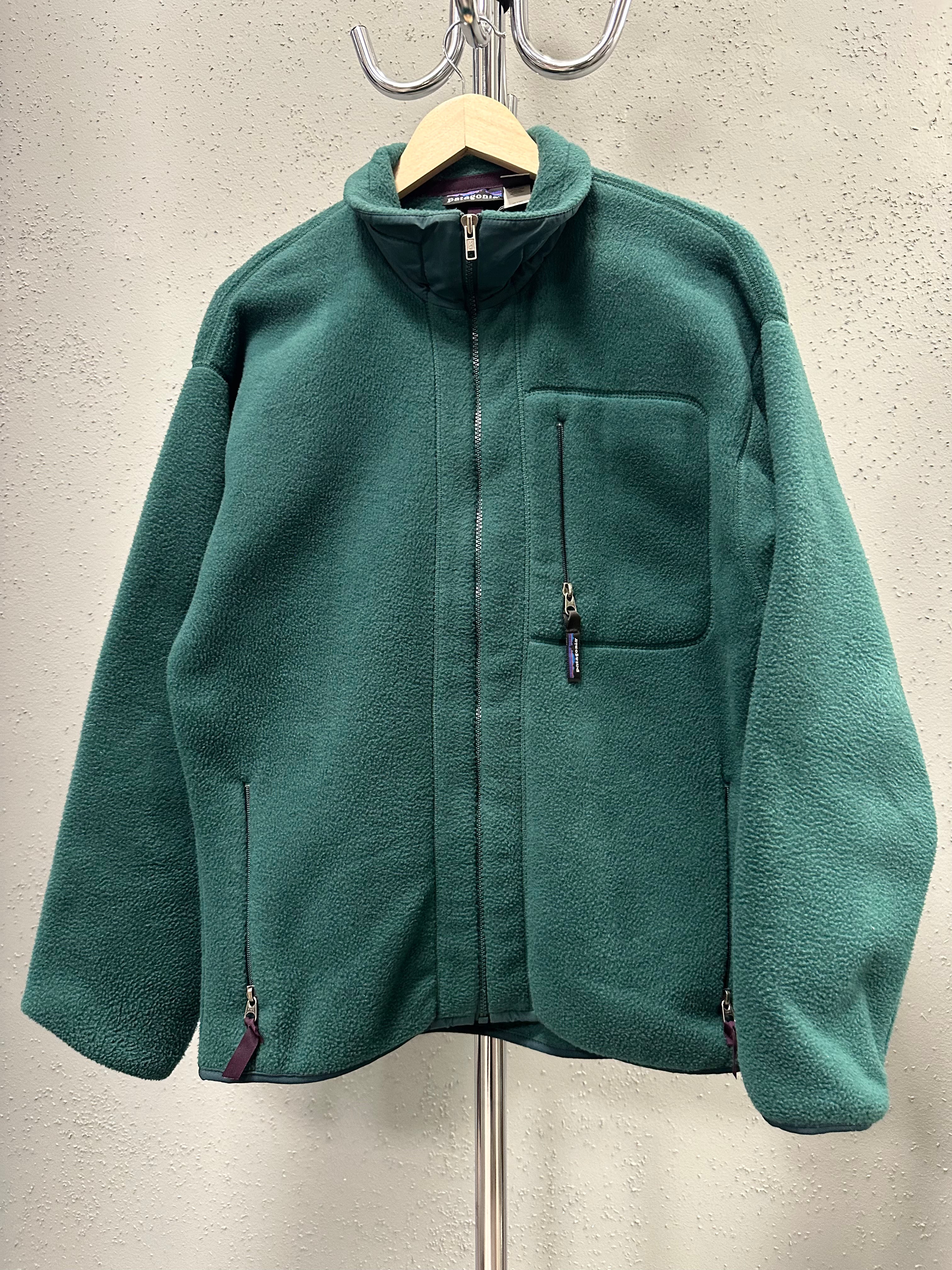 A classic Patagonia Synchilla fleece jacket from the 1990s, made in the USA — from the period when Patagonia’s fleece program set the standard for durability and function.