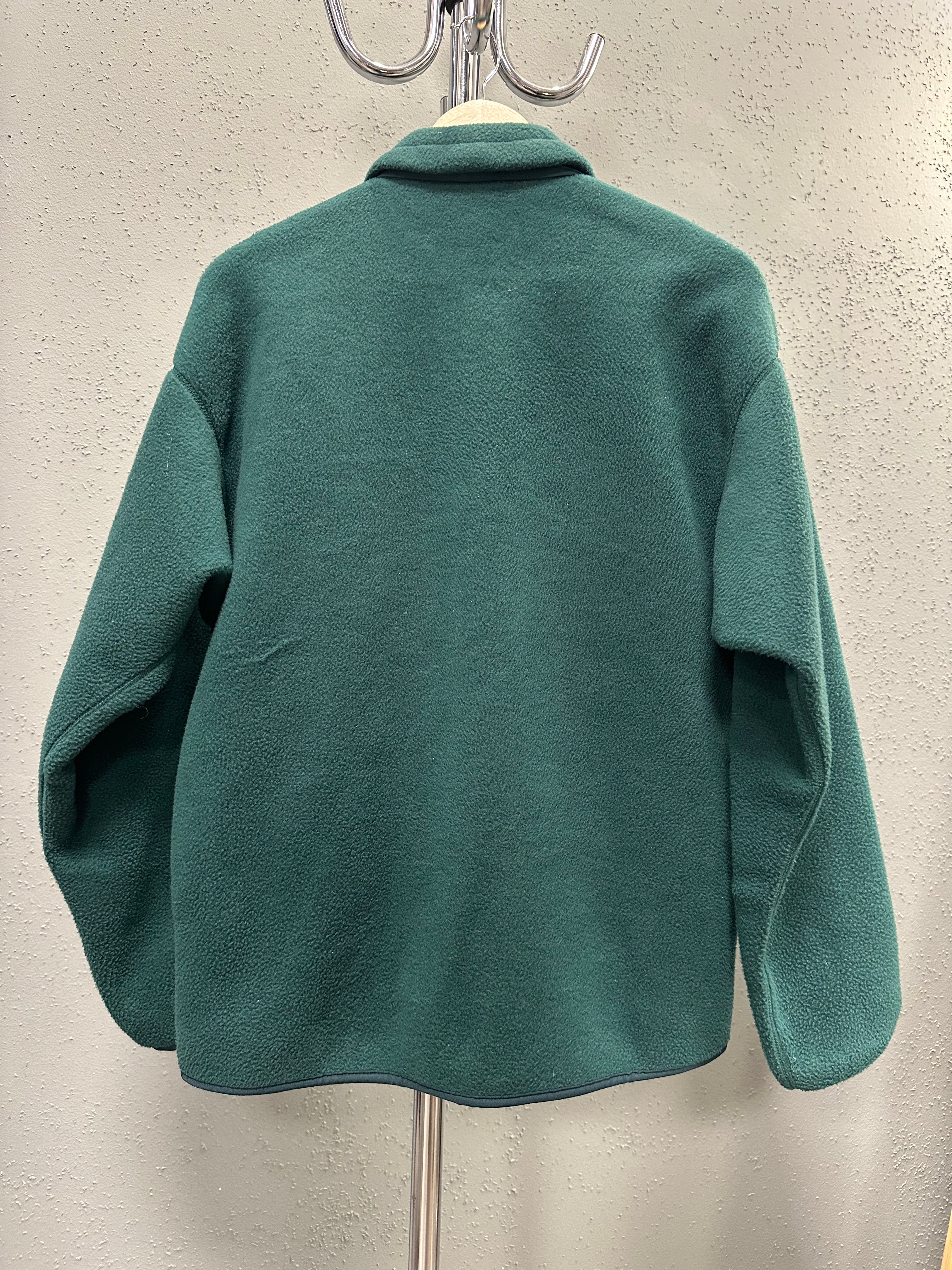 Finished in a deep green tone typical of Patagonia’s early outdoor palette. Works equally well as a mid-layer or a light outer layer.