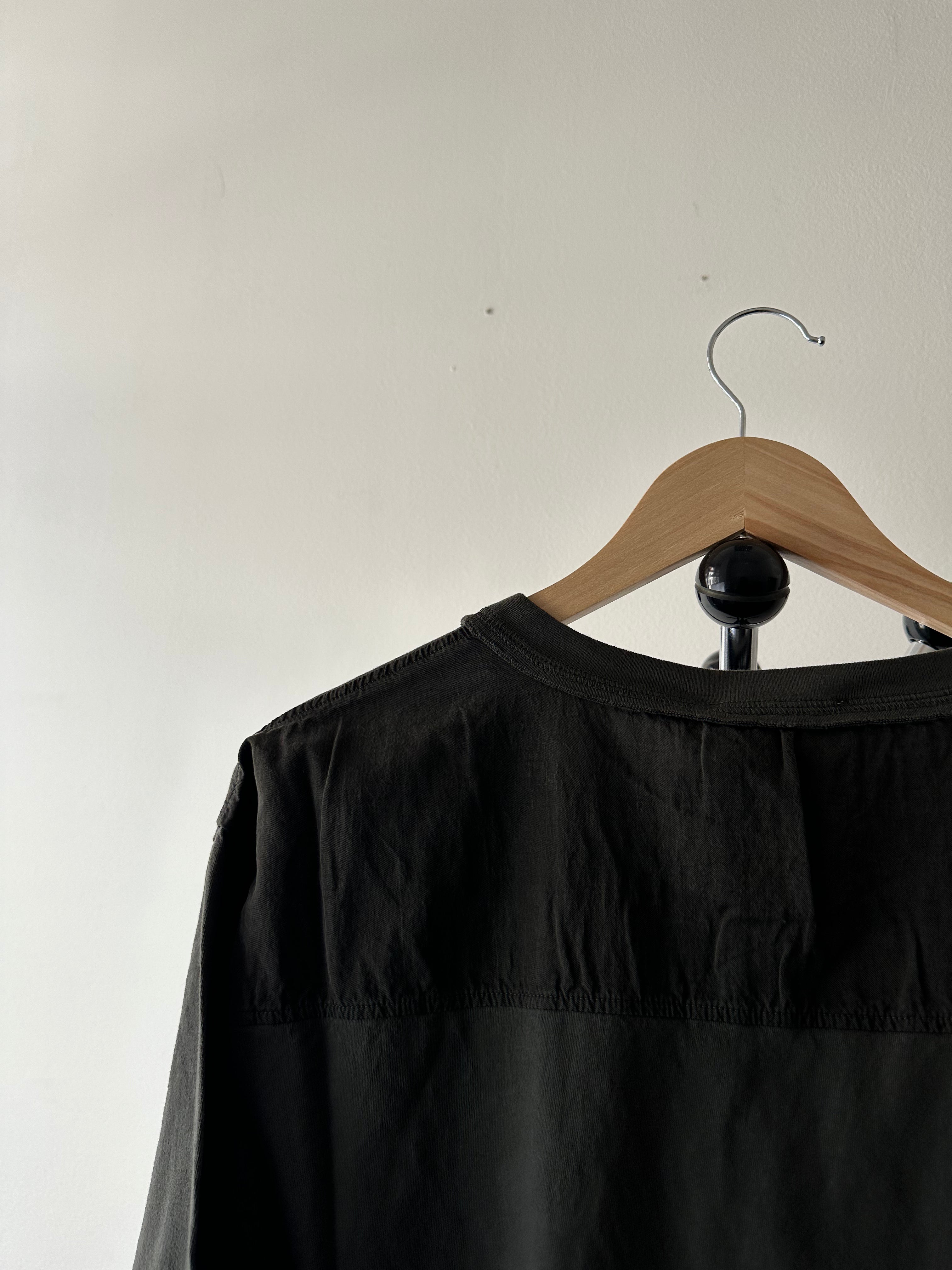 A study in minimal form with raw precision. This oversized short sleeve T-shirt is cut in Italy from soft cotton jersey, finished with string details at the hem that bring movement and adjustable shape.