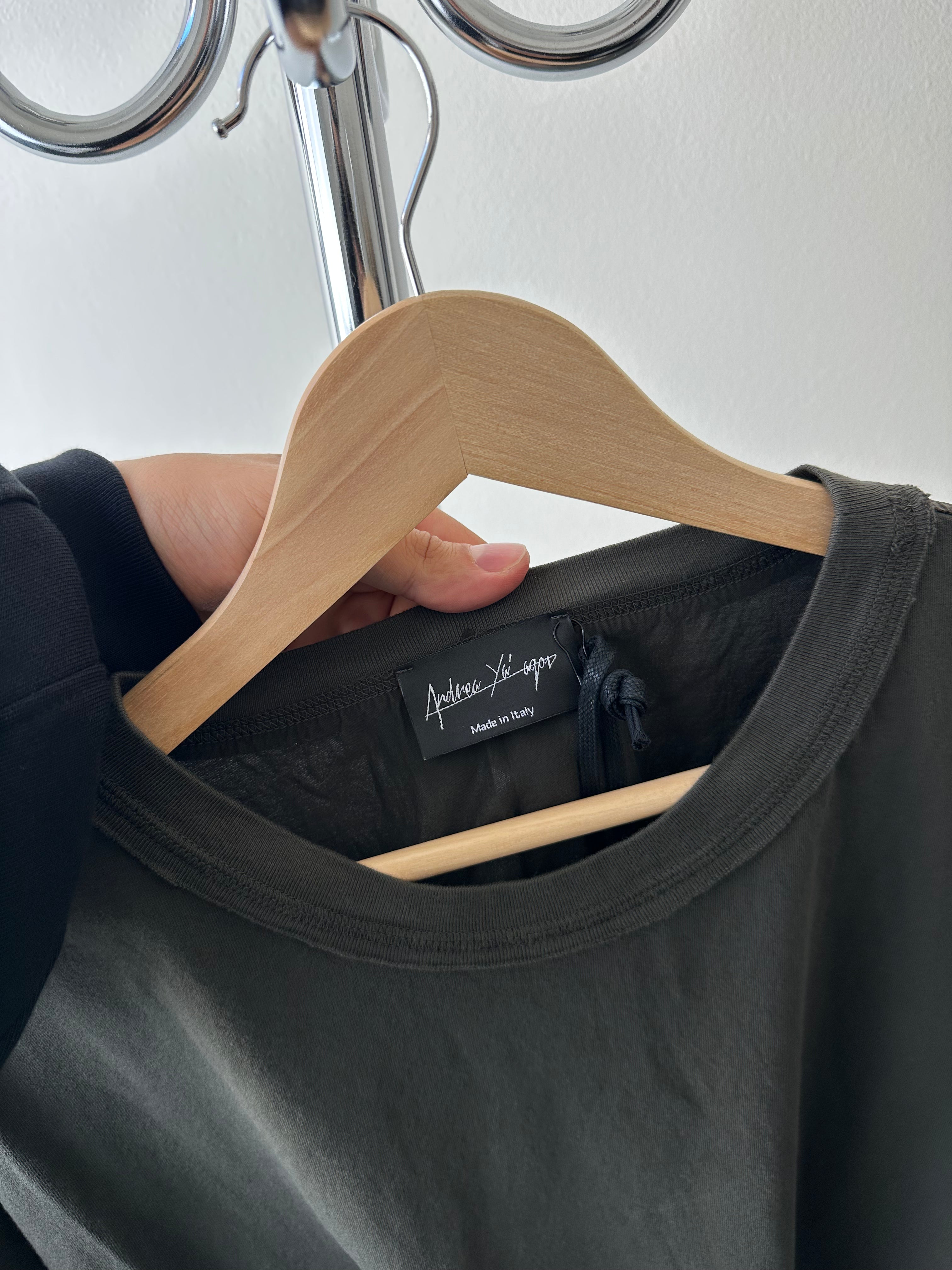 Andrea Ya’aqov reduces the T-shirt to structure and line — minimal, raw, and intentional, built to live beyond seasons.