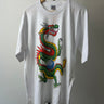 Unworn 1990s deadstock piece featuring a vivid full-front dragon print — rendered in multi-layer plastisol ink with bold reds, greens, and yellows.