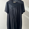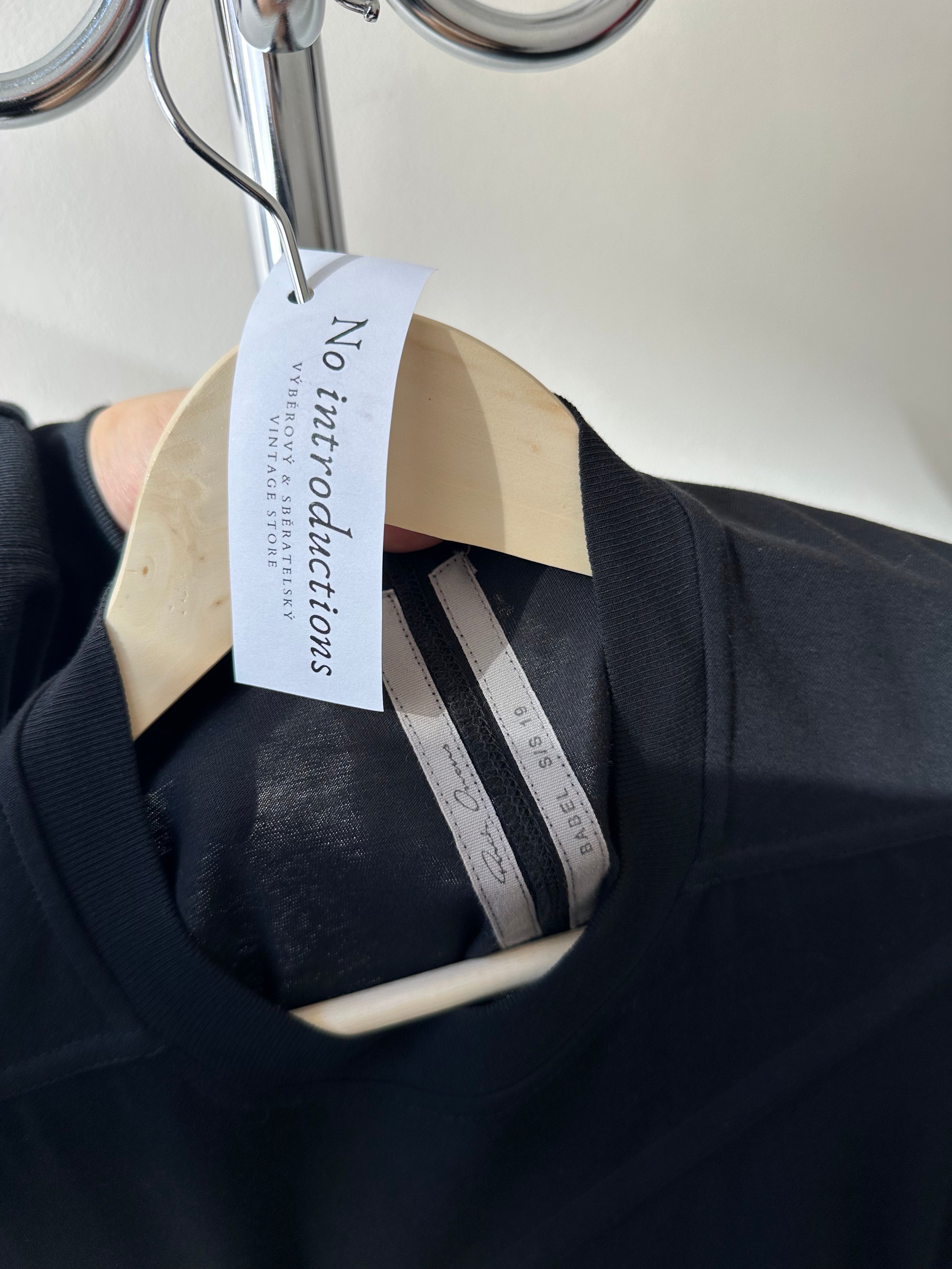 Part of the Spring/Summer 2019 Babel collection, this piece holds in its seams the tension between order and chaos. The muted jersey base is elevated by metallic/internally structured elements (“illuminium sticks”) which nod to the aluminium poles seen in Babel’s wearable tents: rigid fragments that let the form shift, respond, even distort, depending on how you wear it.