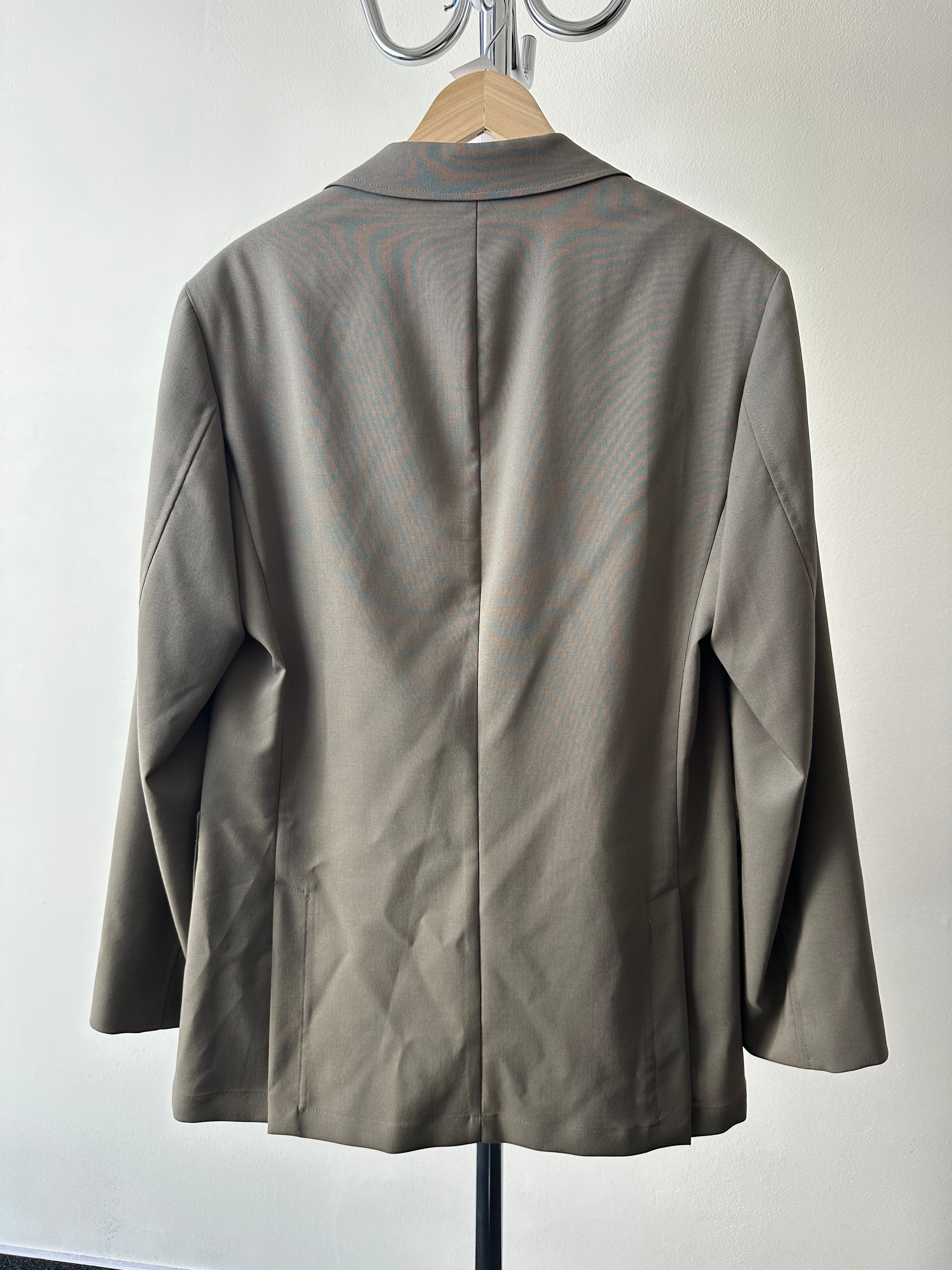 Never worn, the fabric remains crisp and untouched, ready to break in with its first wearer. Minimal branding, maximal versatility — a blazer that shifts easily from sharp tailoring to everyday uniform.