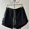 Black pentagram shorts featuring the distinctive star-shaped seam construction and long drawstrings. A recurring Rick Owens design that first appeared in the SS12 “Strutter” collection, later revisited in subsequent seasons. This pair carries the code DU02B5437, placing it in a later DRKSHDW release (most likely FW21), with the same iconic construction that made the original a cult piece.