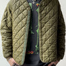 Diamond quilted pattern, ribbed cuffs for added warmth, lightweight yet insulating, in a beautiful olive green color