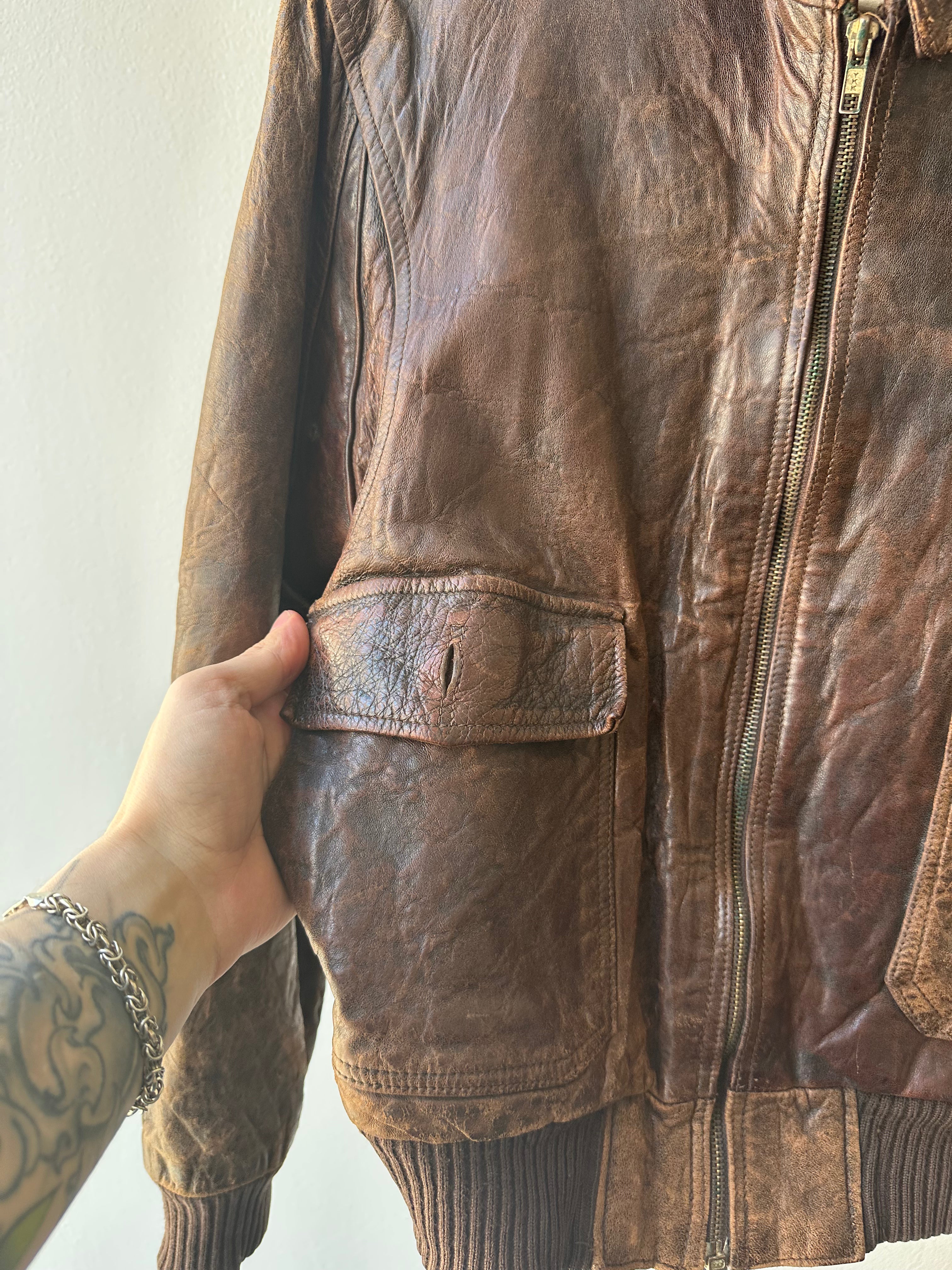 Vintage 1990s Eastcoast Bureau of Aeronautics Leather Jacket - size M