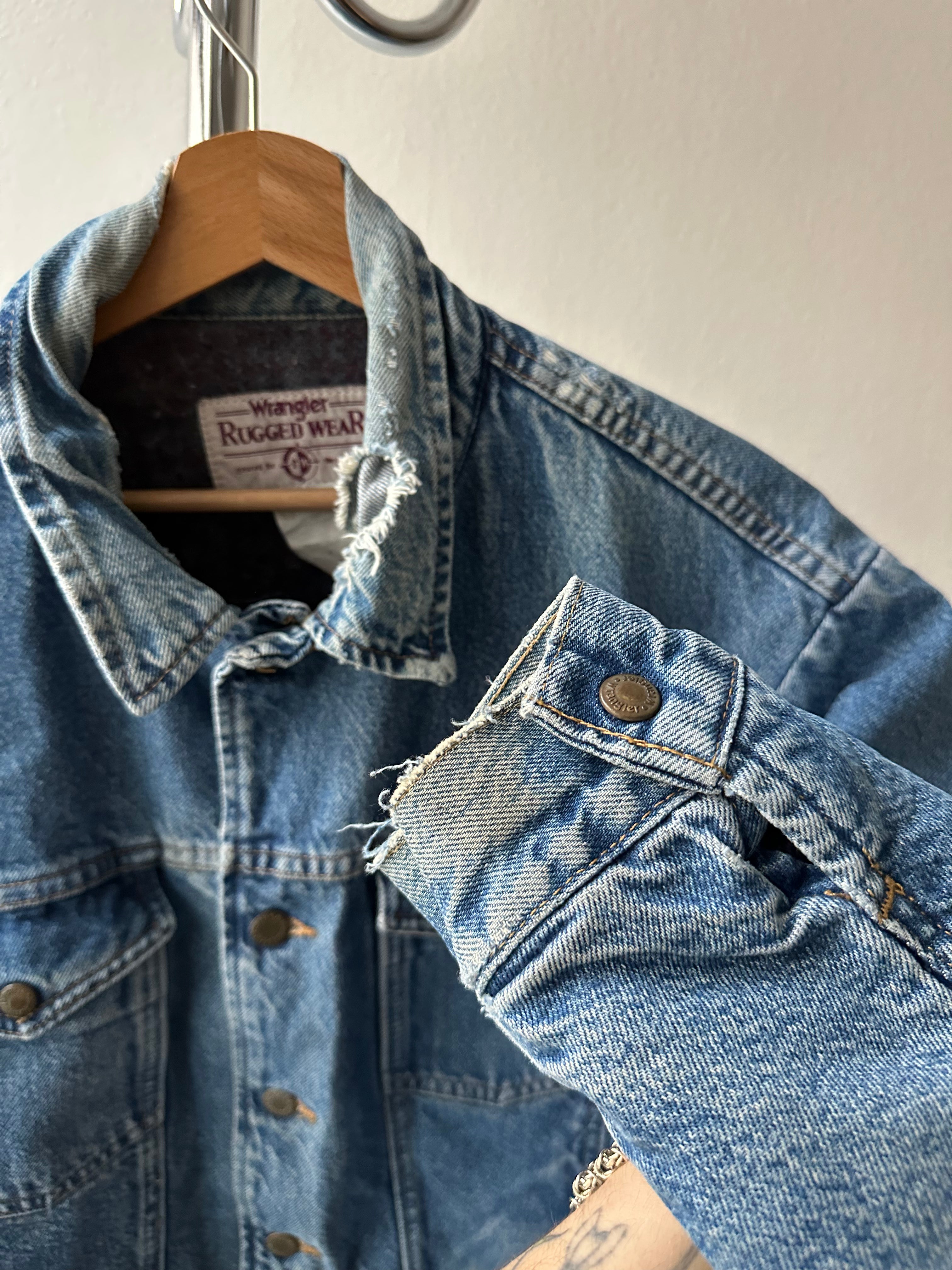 This Wrangler Rugged Wear denim jacket is a timeless & durable piece from the 1990s